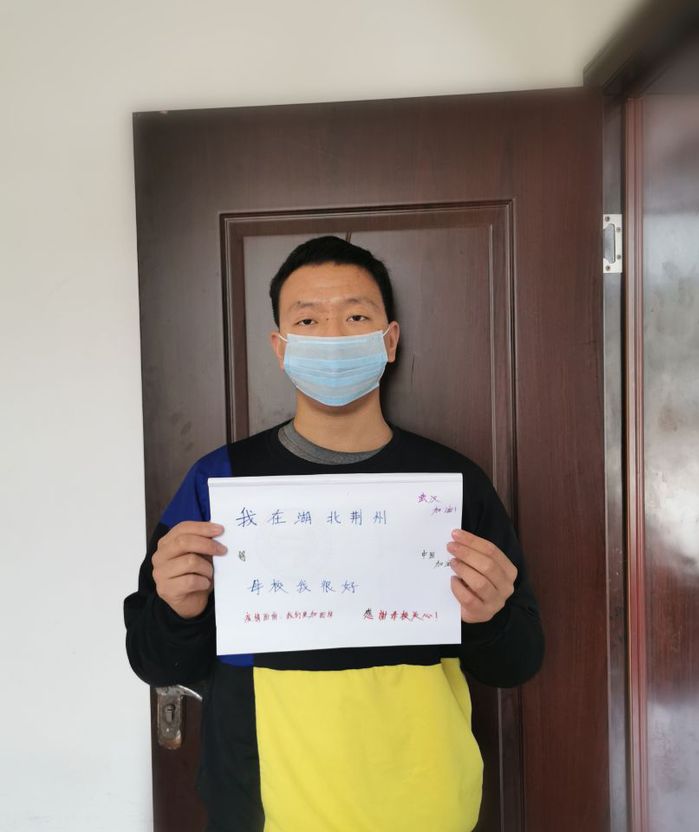 机械学院官震在湖北恩施,他谈到,“1月18日途径武汉返回恩施,在了解到疫情严重性后很担心自己被感染,并立刻在家隔离。虽然被隔离,但是爱并没有隔离,我收到了很多学校领导和辅导员的关怀和叮嘱,就在昨天我也收到了来自学校的疫情防控物资,它飞跃千山万水来到了我手里,真的是一份沉甸甸的牵挂,特别感动学校对我们疫区学子急切的关心关怀。因为疫情不能按时返校,内心也蛮着急,这学期课程压力比较大,跟老师做的项目也没法往后落实,学校及时发布通知,停课不停学,我们大家能够一起在家通过互联网进行学习,也就比较安心了”。