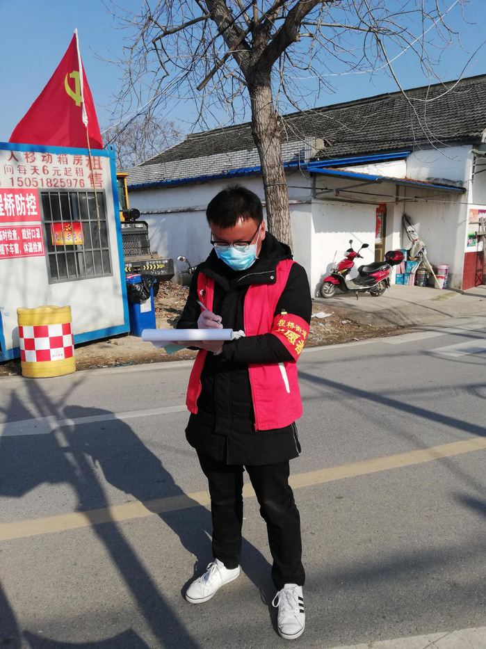 机械学院研究生三年级的汤文宁同学一直坚守在甘肃省天水市清水县丰望乡车河村二组汤家湾南边村口,主要负责南边村口进出村庄人员的审查和筛选,对进出人员做详细的体温测量登记,以及对进出人员日常行踪的记录。汤文宁同学在辛苦的志愿工作中坚持不懈,“是一颗积极的红心,是我不想让我的家人,亲戚,朋友,同村的叔叔阿姨,哥哥姐姐,弟弟妹妹们身陷“险境”,是我想要以自己所学,以自己微弱的能力向他们的“无知无畏”发出呐喊。”汤文宁同学始终坚守在自己的岗位上,“在防疫过程中感触最深的事就是为了给村中说这件事的时候,跟长辈们发生了对疫情认知上的冲突,在他们眼里总是那么风轻云淡。好在我劝服了自家亲戚和邻居,虽然效果甚微,但感觉还是很不错,至少他们听我的了。”汤文宁同学用自己的行为带动周围的村民,为疫情防控做出了自己的贡献。