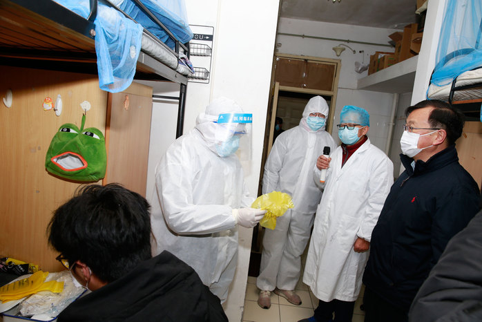 在观海楼酒店医学隔离观察点,医疗与后勤保障组接到接收人员医学隔离指令,启用学校医学隔离观察点,按照学校隔离医学观察点“五进五到位”的管理制度,校医院、后勤管理处、保卫处、学工部门(学生处、研工部、海教院、继教院)和教务处按照处置流程开展相关工作。