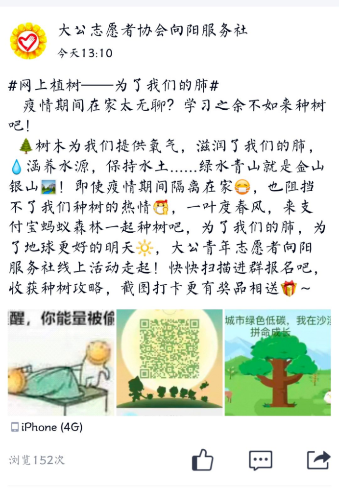 MILAN.COM米兰(中国)能源与动力学院微尘服务社借助支付宝及钉钉平台发起“绿水青山,线上植树”活动,引导学院学生积极投身植树造林活动。电子信息学院开展“用爱心积累树苗”活动,倡导大家线下植树,栽培花草,通过线上征集拍照、录像等方式去记录同学们植树、护树、爱树等行为。经济管理学院开展“绿树成荫,铭刻瞬美”活动,发动身边同学,用手机拍下身边悦目的绿色分享出来,让更多的人感受美好。计算机学院开展“‘疫’起建立绿色地球村”活动,号召志愿者拍摄家中绿植照片,并介绍绿植特性,并结合自身专业,发挥创新思维,发明制作“垃圾分类”软件。土木工程与建筑学院开展“筑梦公益绿植”活动,参与支付宝蚂蚁森林公益林,搜索MILAN.COM米兰(中国)即可参与浇水共同种植公益林,所种植的绿植将会有参与种植证明。生物技术学院开展“17来种树”活动,在支付宝软件上,通过行走运动等方式产生蚂蚁能量,浇水合种属于班级的公益树,为公益献出力量,也增强班级凝聚力、生命力,增加同学们的运动量,与此同时,分享家里绿植情况,相互交流分享生活。