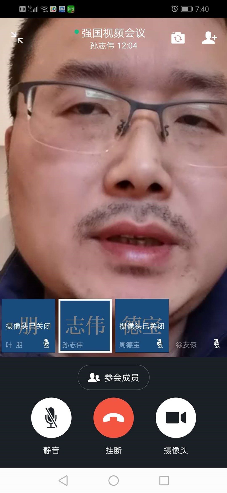 3月12日晚上6点50,战斗在武汉市江夏区人民医院的孙志伟医生和赵燕燕护士长下班后回到了驻地,简单吃了晚饭,就根据约定时间打开了学习强国的视频会议系统。通过这个便捷高效的会议平台,他们介绍了抗“疫”一线的总体情况及抵鄂一月多以来的心路历程。孙医生说:“从年初进驻武汉,到如今的坚守,就是为了一个目标:胜利!我既是医生,也是支部书记,用使命守护生命,用行动书写忠诚,让鲜红的党旗在抗‘疫’一线高高飘扬,是我义不容辞的责任”。