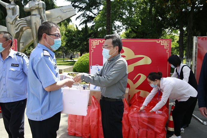 5月13日上午,校党委副书记、副校长、工会主席景旭文代表学校走访慰问奋战在疫情防控一线的工作人员。