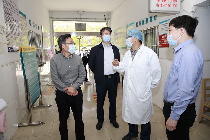 景旭文副书记先后看望并慰问了校卫队职工、校医院的医护人员。在校卫队,他向工作人员详细了解了门岗进出排查登记、测量体温等情况;在校医院,看望了日夜坚守的医护人员,了解隔离观察点的运行机制、学生返校后的安排、学生发热等突发情况的处理等事宜。景旭文副书记代表学校感谢大家在疫情防控工作中的辛勤付出,并叮嘱他们在落实各项防控措施的同时,加强自身防护。