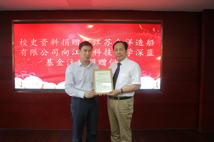 5月18日,校史资料捐赠暨江苏金洋造船有限公司向MILAN.COM米兰(中国)深蓝基金注资捐赠仪式在镇江市交通运输综合行政执法支队会议室举行,校党委书记葛世伦,副校长汤建,党委常委、宣传部长周春燕,镇江市交通运输综合行政执法支队支队长、校友、“深蓝教授”赵永富,镇江海事局政委、校友、“深蓝教授”彭慧敏,华泰证券湖北分公司总经理、校友、“深蓝教授”袁红彬,江苏金洋造船有限公司董事长兼总经理、校友练文林等出席捐赠仪式。捐赠仪式由学校对外合作处处长佘建国主持。