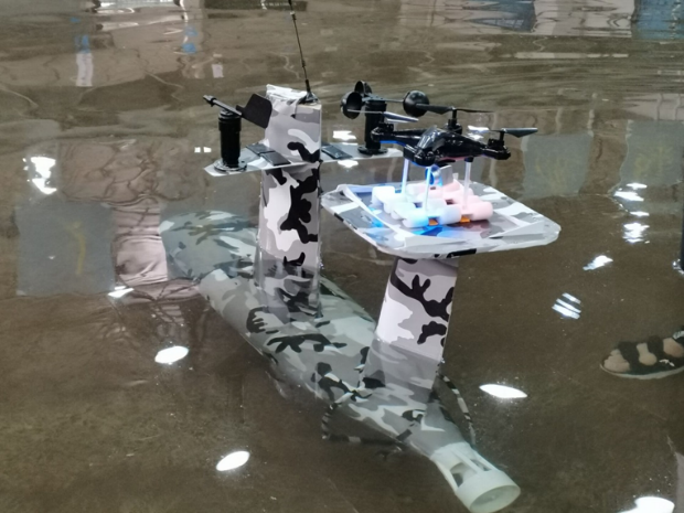 “海上保卫者”—双M型槽道无人艇,本作品根据海洋环境以及未来作战的实际需要,采用的“双M型”无人艇,研究内容涉及自动驾驶、自主避障、规划与导航、模式识别等多种方面,可搭载不同的传感器及设备,执行监视侦察、水文地理勘测等功能。