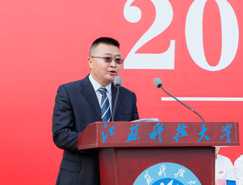 校党委书记葛世伦、校长周南平,1993届校友、全国劳动模范、沪东中华造船(集团)有限公司LNG船总建造师何江华,校党委副书记、副校长景旭文,校党委副书记许俊华,副校长王加友,副校长姜朋明,校纪委书记、监察专员郑培钢,副校长谈镇,副校长嵇春艳,校党委常委李恒川、周春燕、刘新波出席典礼。副校长姜朋明主持典礼。