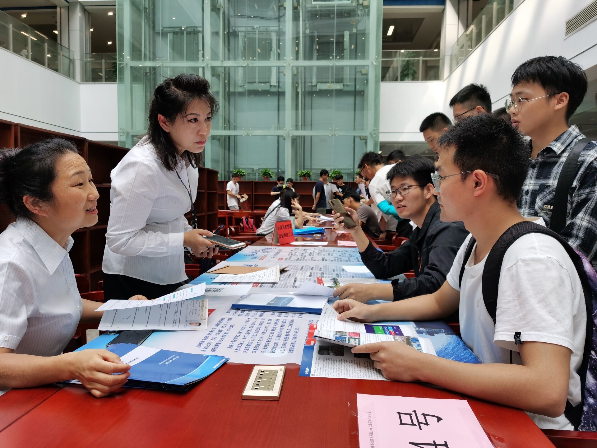 “许君深蓝梦,惟盼有志者,职等乘风破浪的你,与梦想同行。”9月14日,学校在长山校区图书馆一楼大厅举办迁入新校区后的首场招聘会暨中国船舶集团有限公司专场招聘会。本次招聘会共有60家成员单位,共提供了969个就业岗位,其中本科生岗位487个、硕士生岗位428个、博士生岗位54个。单位数和提供的岗位数是集团公司近年来校招聘最多的一次,其中,武汉712等科研院所首次到我校招聘毕业生。