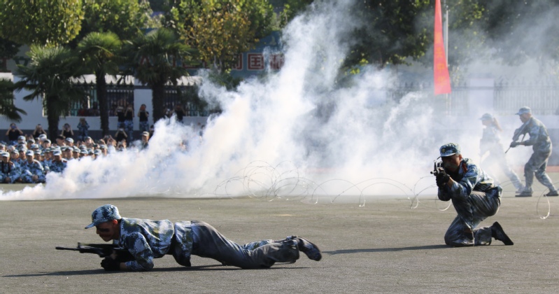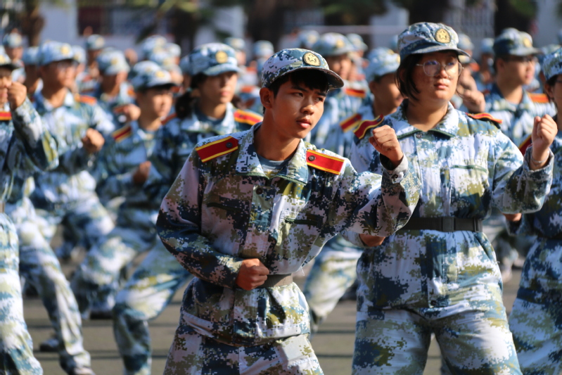 国旗方队、军旗方队雄纠纠、气昂昂,率先通过主席台。各营方阵紧随其后,坚毅的神情,高亢的口号,强劲的步伐,无不挥洒着青春的力量。巾帼不让须眉的匕首操、气势恢宏的棍术操练、所向披靡的军体格斗、大气磅礴的军体拳、凌厉矫健的模拟战术、热烈活泼的拉歌,精彩纷呈的表演博得了现场观摩师生阵阵掌声。