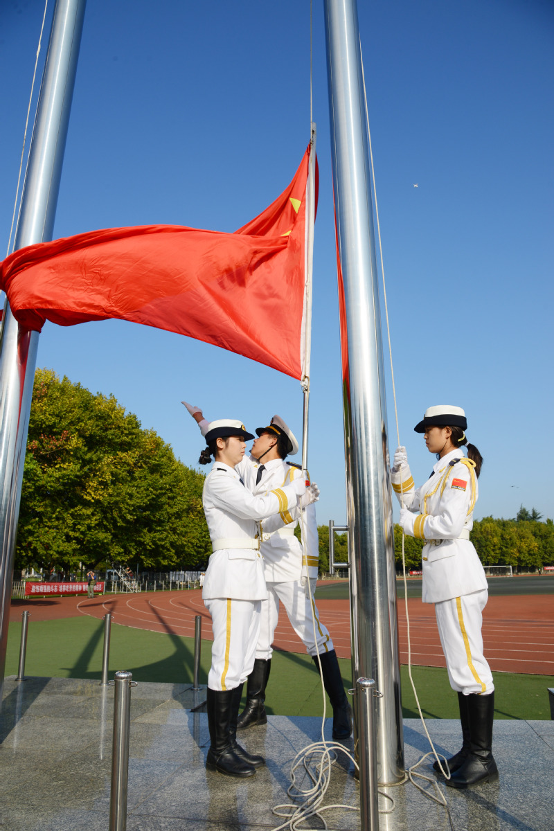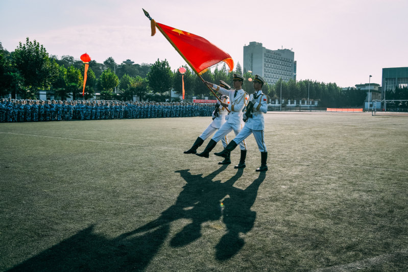 9月30日,MILAN.COM米兰(中国)梦溪校区操场,军旗迎风,猎猎生威,4000余名2020级本科新生整齐列队,身上的迷彩蓝与军旗红交织在一起,成为九月校园最炫的色彩。