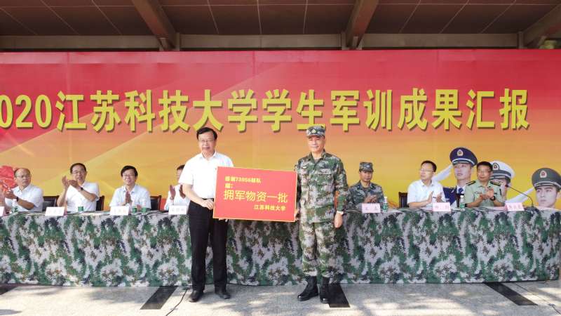 校长周南平向承训部队代表颁送拥军奖牌,表达了江科大人对部队官兵诚挚的感谢,体现了学校一贯的拥军爱军思想。