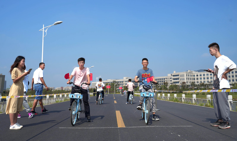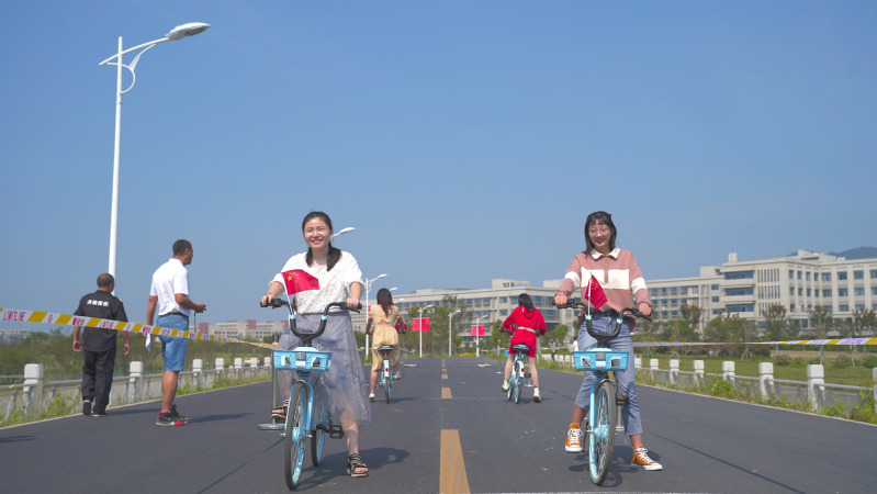 座谈会后,学生处组织学生开展了“慢骑比赛”,赛道设置在海韵湖边,没有激烈的呐喊,没有高声的助威,参赛者在缓慢行驶过程中享受着阳光的沐浴,湖风的抚摸,感受着学校的温暖。