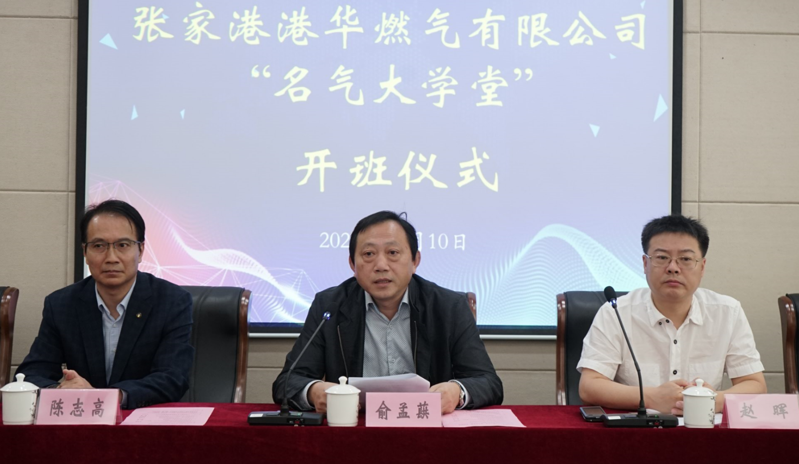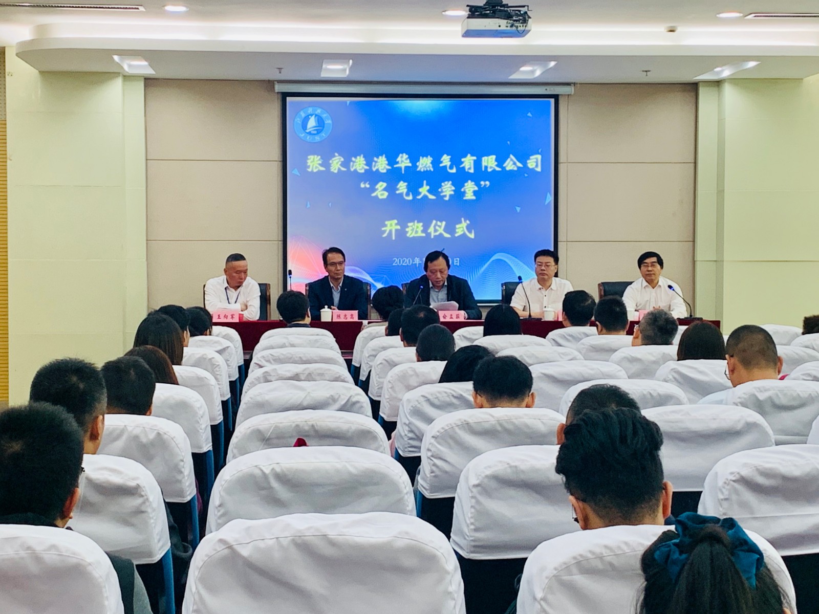 10月10日上午,张家港港华燃气有限公司“名气大学堂”在校开班,副校长俞孟蕻,张家港市金城投资发展有限公司党委书记、港华燃气有限公司董事长赵晖,港华燃气有限公司总经理陈志高等出席开班式,开班仪式由继续教育学院院长张坚强主持。