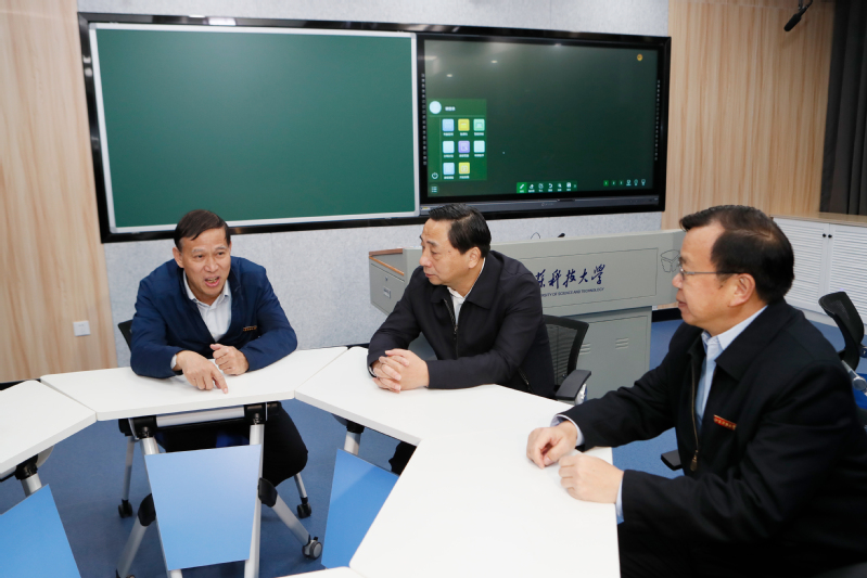 随后,马明龙走访了学校图书馆和文理大楼,仔细察看了师生们的学习生活环境。在教学管理中心,马明龙详细了解多媒体教室控制中心以及精品课录播教室的运行情况。