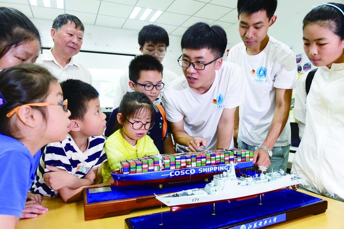 景荣春党支部用巡回演讲、现场示范、微视频展播、微故事讲述等丰富多彩的表现形式,增加了船舶模型馆讲解、VR展示、三维建模等特色形式。在船舶模型馆里共画“未来蓝图”、在长旺村的草地上畅谈青年精神,在党员爱心书屋里演绎“中共一大”话剧......讲好中国故事,讲好中国共产党故事,讲好新时代中国特色社会主义故事。实践归来,初心不改,他们将这一形式融入“不忘初心,牢记使命”主题教育之中,不仅形成了一系列特色鲜明的新思想宣讲内容,还制作出许多特色党日活动的新思想宣传文化产品。支部党员拍摄了“青年大学习”新思想专题视频、《青年,我有话想和你说说》主题微电影,用学生们喜闻乐见的新媒体视频宣传新思想,在人民网、新华网客户端多次发表并获得了超过90万次的阅读量;支部党员以在校学生的角度,应答学习强国APP“网络亚文化现象”的观点获得超过12.5万次的点赞量。