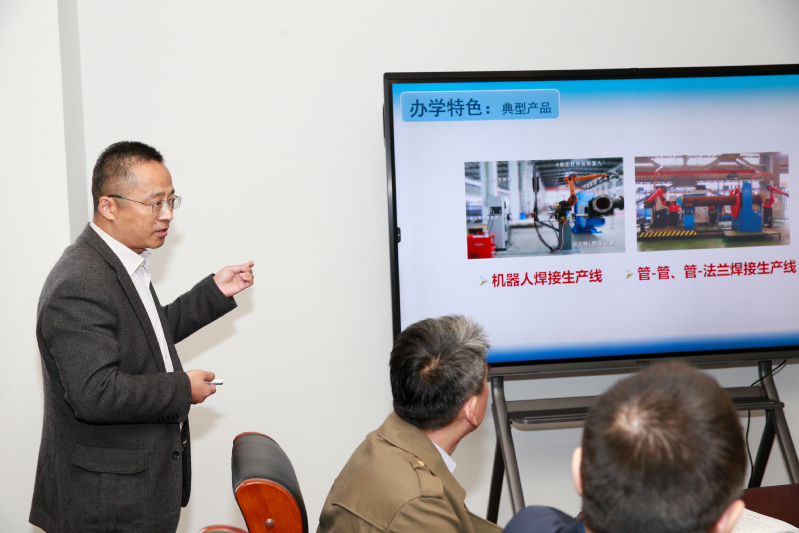 科技处处长王志东汇报了学校的典型产品、科研平台、主要优势科研方向以及重大专项。