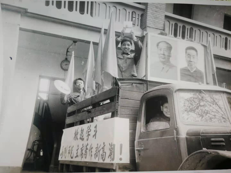 1977年时任宣传科長朱东林从新华书店喜领毛选第五巻返校
