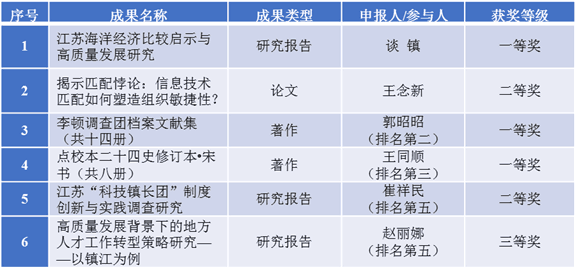 江苏省哲学社会科学优秀成果奖是江苏省哲学社会科学界规格最高的政府奖,该奖项由江苏省人民政府设立,每两年评选一次,旨在奖励个人和集体在哲学社会科学研究领域的优秀学术著作、论文、研究报告和普及成果,鼓励广大社科工作者从事哲学社会科学的前瞻性、创新性、科学性研究。近年来,学校积极推动哲学社会科学的繁荣发展,我校的哲学社会科学高水平科研成果开始不断出现,本次的获奖数量和质量实现了新突破。