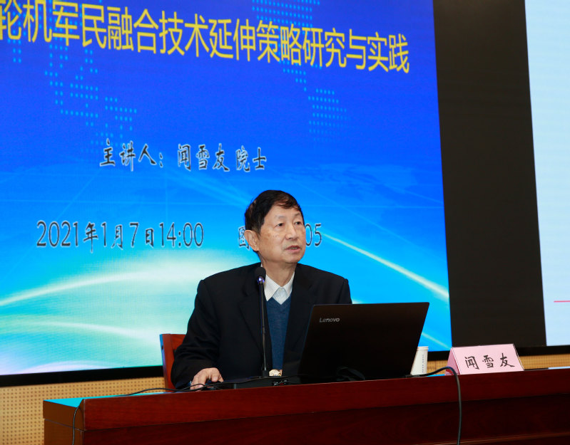 1月7日,应能动学院邀请,我国舰船燃气轮机著名专家,中国工程院院士、博士生导师、中国船舶集团703研究所原所长兼党委书记闻雪友做客我校第67期名家讲坛,做了“燃气轮机军民融合技术延伸策略研究与实践”主题报告。校党委副书记、副校长景旭文主持。