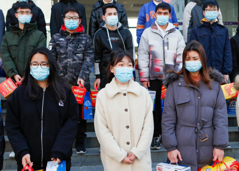 “在学校生活上有什么困难?”“你的家乡在哪里?”“要定期向家人汇报在校情况,别让他们担心”。2月4日上午,党委书记葛世伦、副校长汤建带队走访慰问寒假留校学生,详细了解因疫情影响而留校学生的实际需求,有针对性地给予指导和帮助,并送上新春慰问礼品。党办校办、宣传部、研究生工作部、团委、学生处、保卫处、后勤等部门负责人陪同慰问。