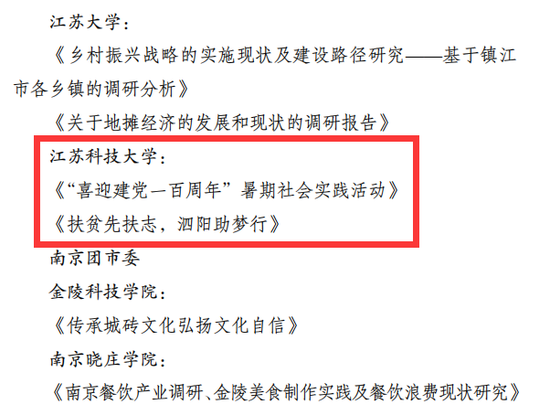 《“喜迎建党一百周年”暑期社会实践活动》《扶贫先扶志,泗阳助梦行》荣获“优秀调研报告”称号