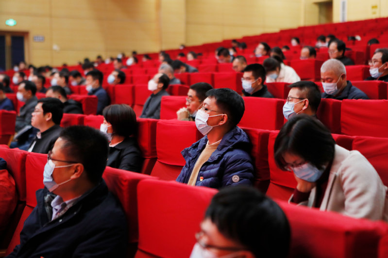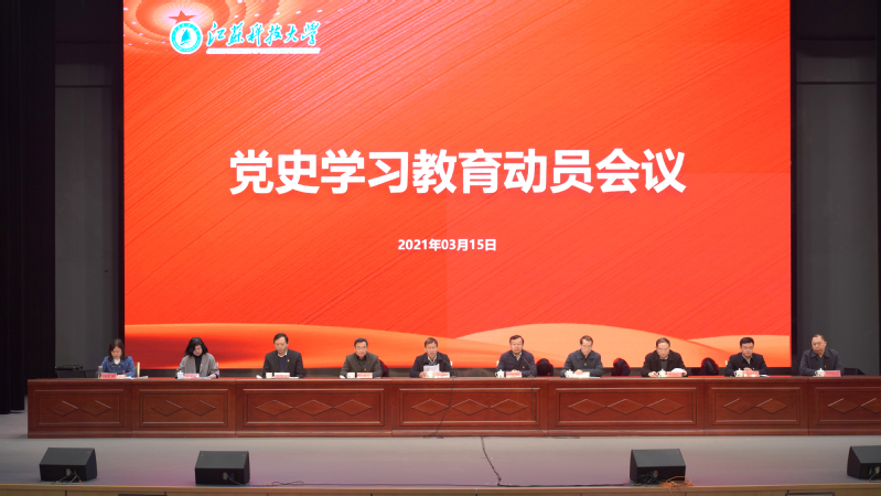 学校党史学习教育动员大会主会场设在长山校区长山剧场,学校领导班子成员、党委理论学习中心组全体成员、全体中层干部、党支部书记现场参加会议,张家港校区在分会场通过视频直播形式收看会议。