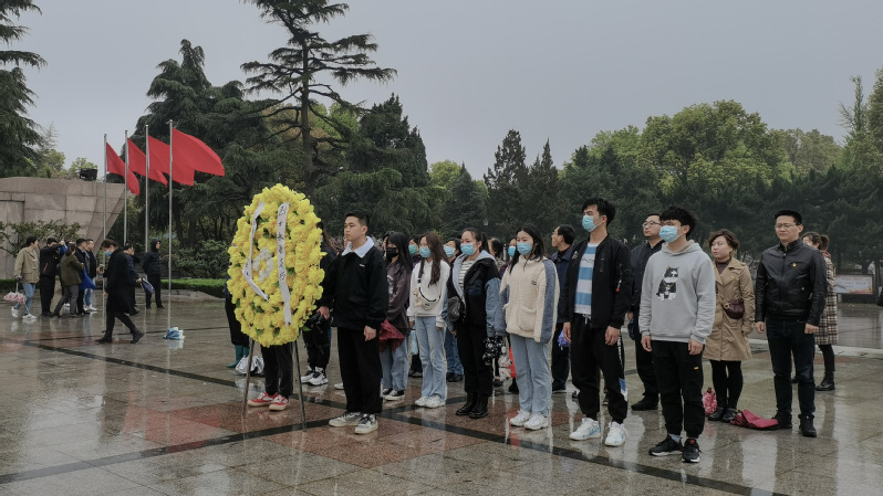 镇江市烈士陵园革命烈士纪念碑前,生物技术学院蔡兴汇与张晴晴同学作为代表向烈士敬献了花圈,全体同学面向纪念碑默哀一分钟,深切缅怀革命先烈丰功伟绩,寄托哀思。参加祭奠仪式的吴壮同学表示,“此次活动不仅是一次深刻的爱国主义教育,更是帮助我们明确肩上责任,增强党史学习,牢固树立荣辱观,珍惜前辈们用鲜血和生命换来的美好时光,切实担负起时代赋予我们的艰巨使命,展现新时代大学生风采,发挥党员先锋模范作用,树立坚定信心,扎实工作,感恩社会,奋发有为”。
