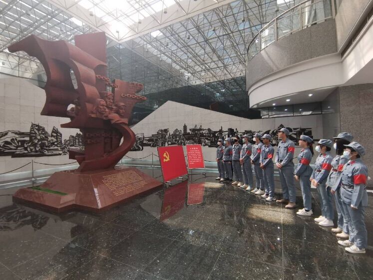 4月1日上午,计算机学院40余名团学骨干、学生党员和青年积极分子来到句容市茅山新四军纪念馆瞻仰与参观,缅怀在抗日战争中逝去的先烈,在苏南抗战胜利纪念碑广场,向先烈雕像敬献花篮。亲历“碑下放鞭炮、空中响军号”奇观,让同学们深刻学习了镇江大地上的抗战精神,红色地标”的璀璨光芒照亮了前进的道路。