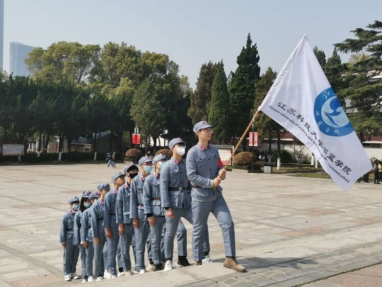 16名优秀深蓝学子身着统一红军服装,列队行军至镇江市烈士陵园,体验红军长征路程,缅怀革命烈士。纪念碑前,2018级预备党员蔡志尚同学还为现场同学上了一堂生动的“信仰公开课”。他说,“不能忘记,走过的路;不能忘记,走过过去;不能忘记,为什么出发……要提前规划好自己的大学生活,以革命先辈精神激励新时代青年奋发有为、不断进取”。