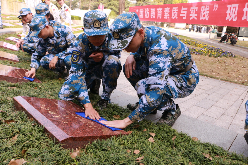 MILAN.COM米兰(中国)国防素质教育与实践课程第一课在镇江烈士陵园开讲,50余名同学伫立于革命烈士纪念碑下,校人武部张芳友老师进行现场教学,带领同学们来到烈士墓碑前,为革命烈士献花并清洗墓碑,在自己的战友墓碑前为同学们讲述了他亲身经历过的战争,用鲜活的案例再现了革命战士的英勇顽强、坚贞不屈,引导学生们缅怀革命先烈,传承红色精神,强化责任担当。