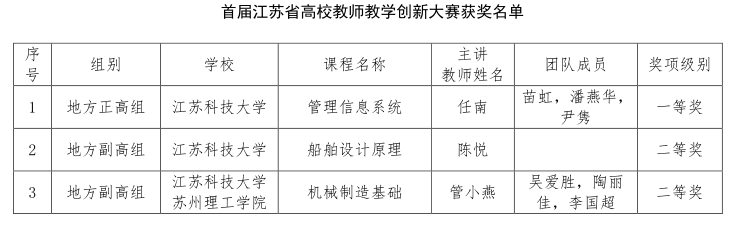 近日,首届江苏省高校教师教学创新大赛(本科)在江南大学召开。我校荣获一等奖1项,二等奖2项。