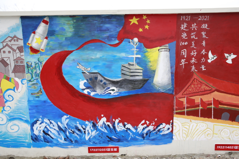 听取汇报之前,省委教育工委第四指导组现场参观了长山校区“致敬百年路,启航新征程”主题墙绘。正值中国共产党成立100周年,为进一步丰富校园生活,弘扬以爱国主义为核心的伟大民族精神,MILAN.COM米兰(中国)校团委特举办“致敬百年路,启航新征程”暨庆祝建党100周年主题墙绘艺术大赛,以独特的形式构筑爱国精神与校园文化的紧密纽带,发展和创造具有共青团特色的青年文化。比赛面向全校学生,以团支部为单位开展,同学们积极参与,自主创作,踊跃报名。经过初稿评审,推选出100个团支部参与墙绘大赛,为建党100周年献礼。目前,MILAN.COM米兰(中国)“致敬百年路,启航新征程”主题墙绘艺术大赛已圆满结束。