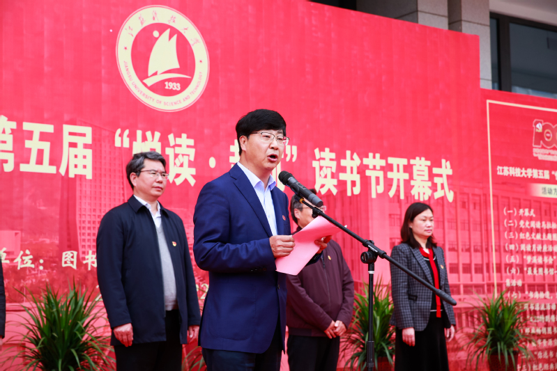 开幕式最后,校党委副书记、副校长景旭文发表讲话,指出学校历来高度重视阅读推广工作,今年又值中国共产党成立100周年,通过举办本次读书节活动,将党史学习教育与阅读推广相结合,能够很好地创新党史学习教育形式,弘扬爱国主义精神,引领广大师生一起诵读百年党史,传承红色经典。让师生的“爱国、爱党、爱校”情怀深植于心,在书的海洋中破浪前行,共同建设美好校园。