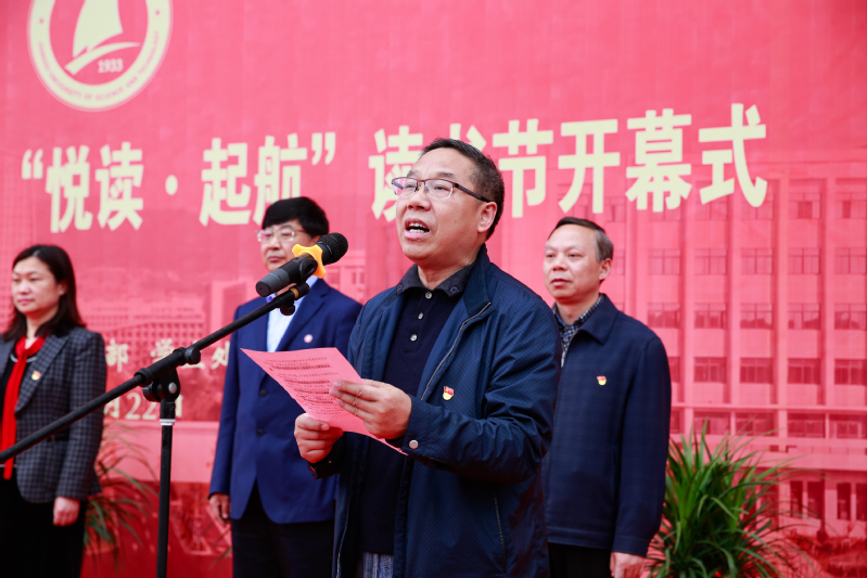 学生代表王云海同学向全校师生发出诚挚的读书倡议,希望大家能响应读书节的号召,以书为友,博览群书,多读书,读好书,把读书当作一种习惯,把读书作为一种生活方式。