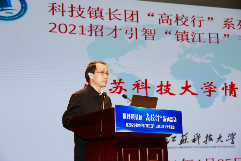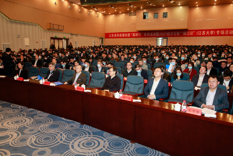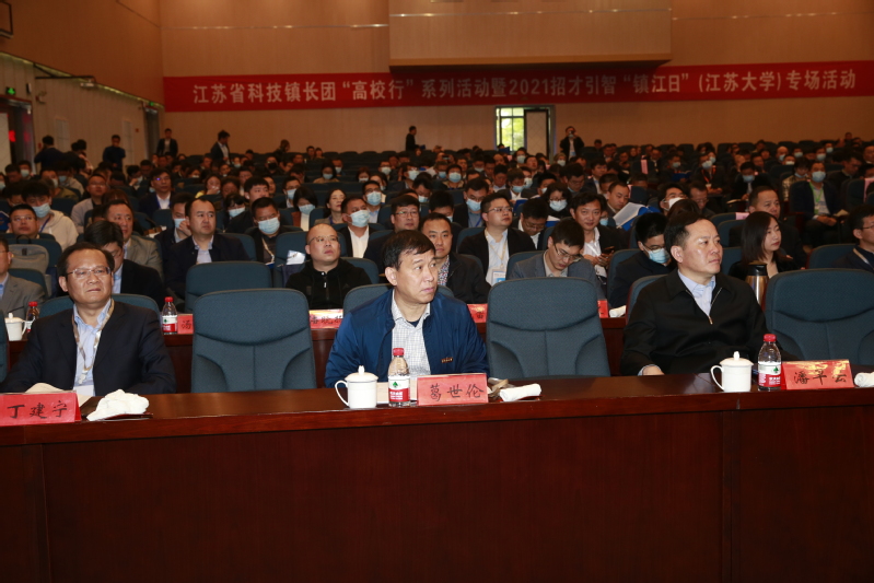 由江苏省人才办和江苏省科技厅主办的科技镇长团“高校行”系列活动暨2021招才引智“镇江日”专场活动,4月25日上午在江苏大学小礼堂举行,来自全省106个科技团成员代表及120家省内企业代表参加活动。省委组织部、省科技厅及镇江市委市政府领导出席。我校党委书记葛世伦出席并共同启动科技镇长团“高校行”系列活动,副校长王加友在会上介绍了学校发展情况。