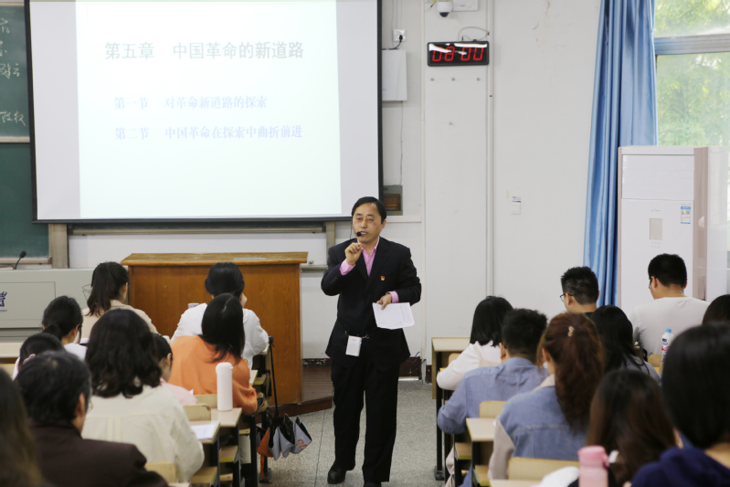 汲取党史之力,砥砺教育初心,推动党史学习教育进思想政治理论课课堂。4月28日上午,校长周南平走进梦溪校区教三305教室,观摩马克思主义学院魏兆和老师的《中国近代史纲要》课堂教学。校领导带头走近师生、走进课堂,是将党史学习教育与思政课建设相结合的一项重要活动,是从中汲取推进学校高质量发展、办人民满意教育的智慧和力量。