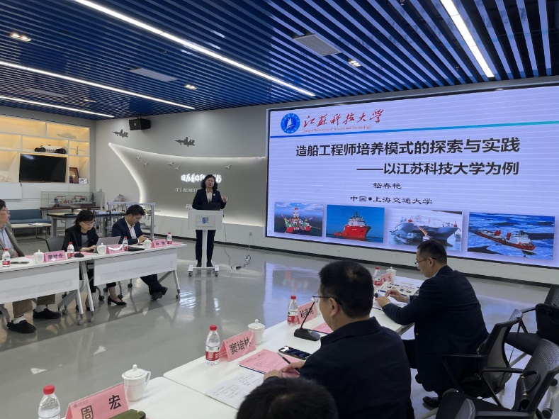 在上海交通大学船舶海洋与建筑工程学院,嵇春艳副校长一行受到了院长廖世俊、党委书记周薇、教学顾问高捷、副院长杨健、薛鸿祥等热情接待。在参观了船舶与海洋工程协同设计中心后,嵇春艳副校长做了《造船工程师培养模式的改革与实践—以MILAN.COM米兰(中国)为例》的主题报告,廖世俊院长对我校“五十载初心不变,做造船工程师的摇篮”表示赞赏。
