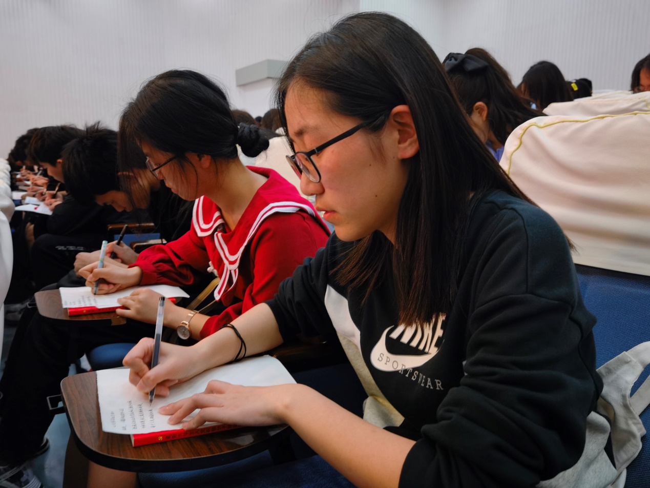 “同学们,拿出纸和笔,今天的党课我们有个小任务。请大家默写国歌歌词!”4月29日晚上,在没有提前安排和告知的情况下, 334名2020级一年级入党积极分子随堂做了一个小练习。同学们惊讶之余,很快开始安静地低头书写,运笔如飞,五分钟完成了这一环节。