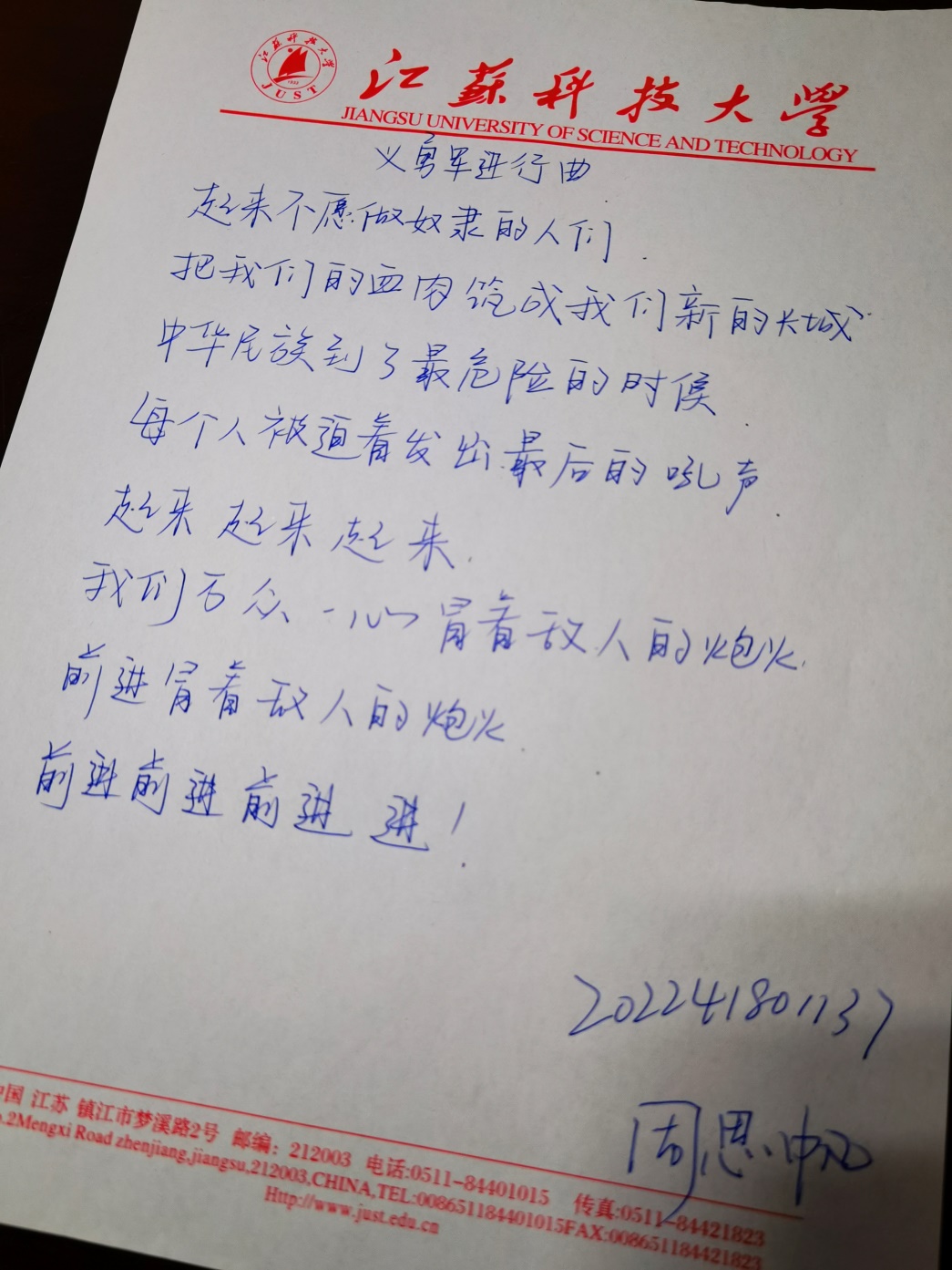 默写国歌:不可忘却的奋斗心