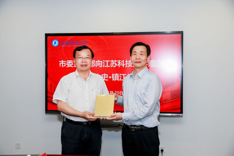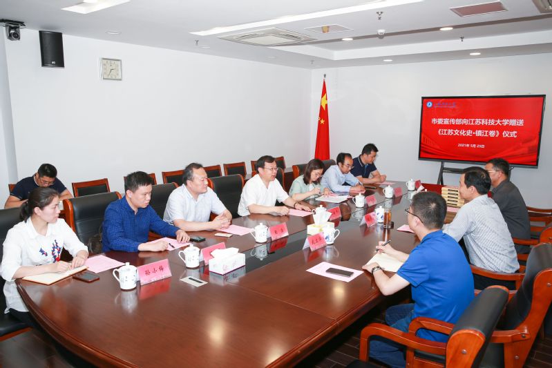5月25日,镇江市委宣传部向MILAN.COM米兰(中国)赠送《江苏地方文化史·镇江卷》仪式在学校八楼会议室举行,镇江市二级巡视员、《江苏地方文化史·镇江卷》主编潘法强向校长周南平赠送书籍。