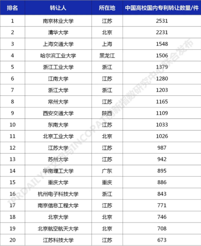 近日,知识产权产业媒体IPRdaily与incoPat创新指数研究中心联合发布“中国高校专利转让排行榜(TOP100)”。榜单对截至2021年3月31日,中国高校在国家知识产权局登记生效的专利申请权/专利权转让数量进行统计排名,榜单显示,我校专利转让累计673件,位列全国高校第20名(2020年第23名),江苏高校第8名。