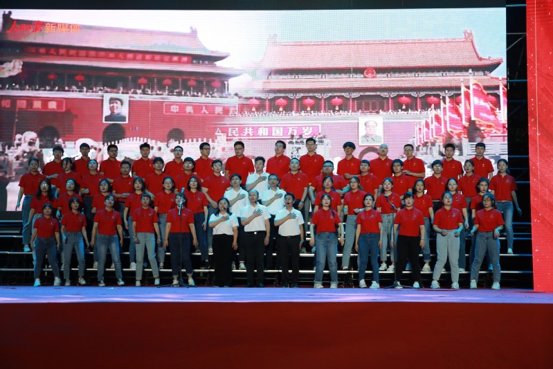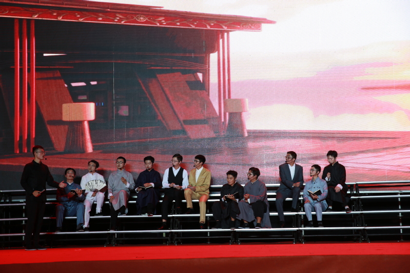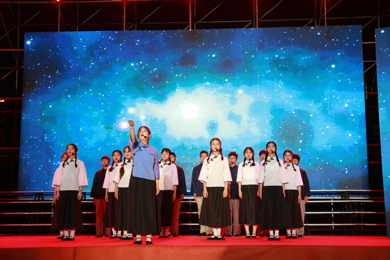 晚会在序曲手语舞《唱支山歌给党听》拉开序幕,这是由全体深蓝学院一年级学生合作完成,翩跹手语舞深情于无声处,展现出全体新生的拳拳爱国心。