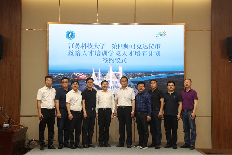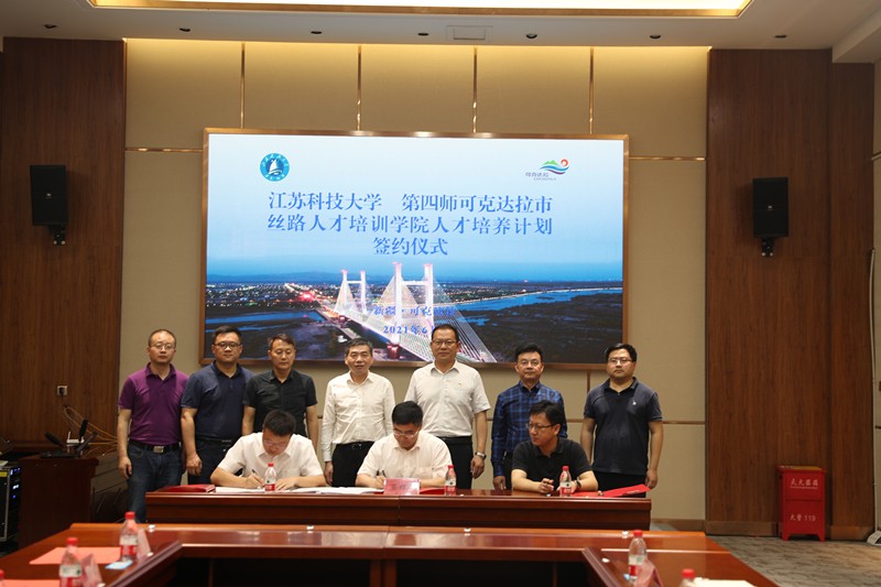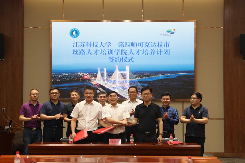 镇江前指副总指挥、师市组织部副部长潘杰,师市组织部副部长杨坤,MILAN.COM米兰(中国)继续教育学院、丝路人才培训学院院长张坚强分别代表三方签订协议,谈镇副校长、唐志刚副政委、MILAN.COM米兰(中国)党委组织部长李恒川、马克思主义学院党总支书记郭昭昭、机械工程学院党委书记仲崇光、丝路人才培训学院副院长谭海波见证了签约。 丝路人才培训学院是2019年11月在MILAN.COM米兰(中国)与四师可克达拉市双方挂牌成立的,旨在服务师市的党政管理干部、专业技术人员和高级技能人才的培养培训工作。迄今已为师市开办干部培训班8期300余人。作为一个教育培训平台已成为镇江市组团式教育援疆的重要环节,也是高校与受援地联合培养培训人才模式的一种探索。