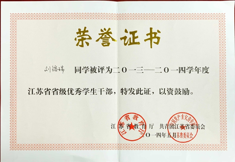 六年来,从支教到扶贫,从在校园里教书育人,到为村民排忧解难,刘镕瑞不忘初心、躬身力行,诠释着一名共产党员的赤诚初心,一名有志青年的责任担当。近期,刘镕瑞被授予“江苏省最美大学毕业生”荣誉称号。