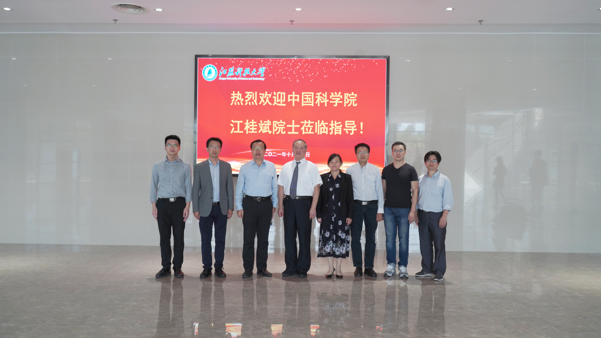 10月12日下午,中国科学院江桂斌院士一行受邀来我校参观访问。江院士在长山校区图书馆105报告厅做了《碳中和目标下的污染防治》主题报告。校长周南平,环境与化学工程学院院长袁爱华、书记徐文睿及部分教师代表、研究生和本科生近三百人参加了报告会。报告会由周南平校长主持。