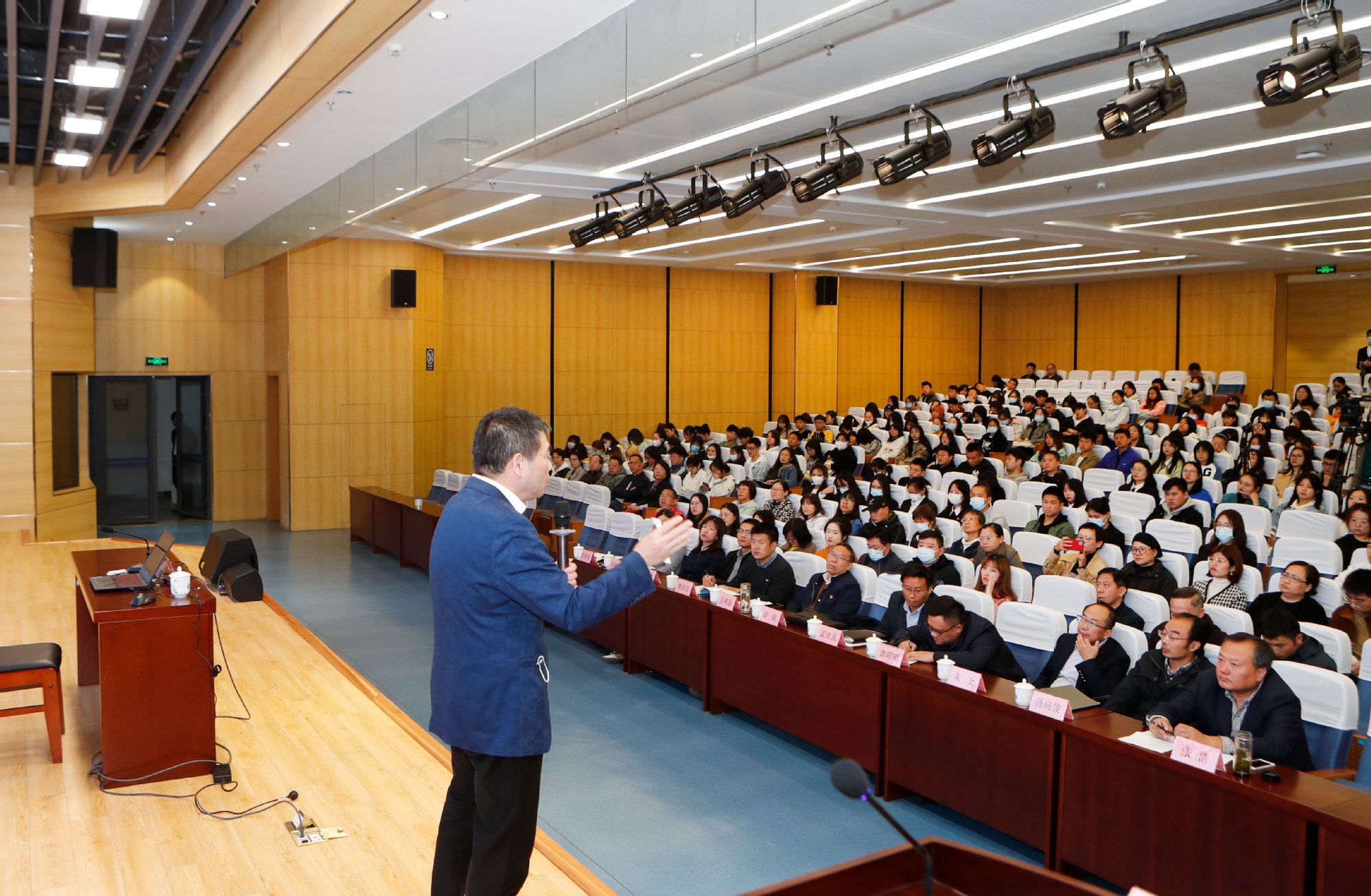 “长山人文讲堂”首场报告由副校长谈镇教授主讲。谈镇副校长围绕《自然科学、社会科学与人文精神》这一主题,以其丰厚的专业学识、长期的学术积累和独到的精研视角,将历史文化与人文精神有机贯通。用深入浅出、风趣幽默的语言,用生动形象、贴近实际的案例,论述了自然科学、社会科学与人文精神的关系,指出哲学社会科学是人们认识世界、改造世界的重要工具,是推动历史发展和社会进步的重要力量,其发展水平反映了一个民族的思维能力、精神品格、文明素质,体现了一个国家的综合国力和国际竞争力。对人生的意义、人生的智慧、人生的价值等问题应该保持足够的尊重;社会科学是对人的智慧自我认识、自我了解最贴切、最直接的研究成果。科学精神和人文精神应该是相辅相成的。要建设高水平大学,必须培育、关注、发展人文学科。大学是有一批文化素养与精神追求的知识爱好者传播知识、造就人才、传递和发展社会的核心价值的重要阵地。