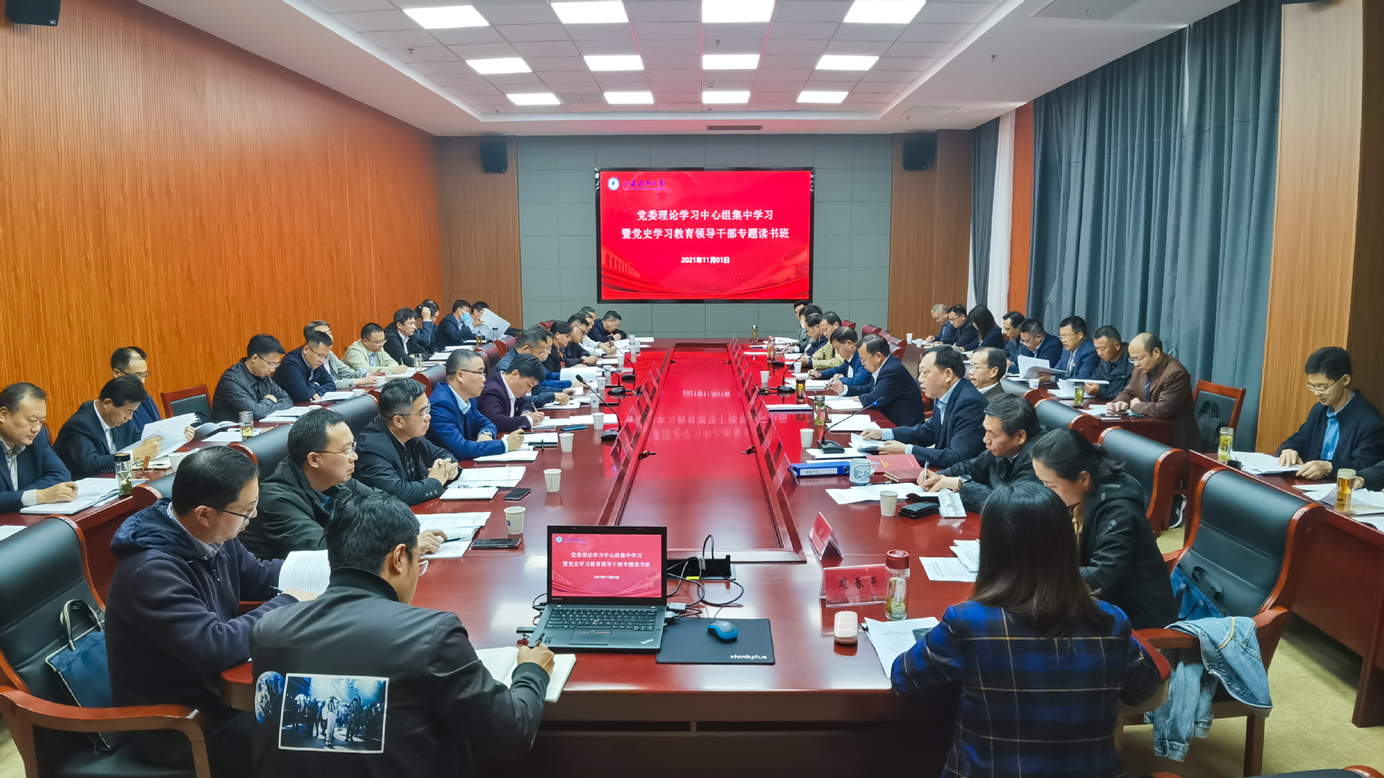 为推进学校高质量发展,助力高水平大学建设,11月1日下午,校党委理论学习中心组在200号报告厅集中开展“准确把握国家海洋强国战略机遇,加强党史学习教育,推进学校‘“十四五”’精彩开局”专题学习。党委常委、副校长汤建主持学习,党委常委、副校长俞孟蕻全面领学,校党委理论学习中心组成员,各学院院长、书记,相关职能部门负责人参加学习。