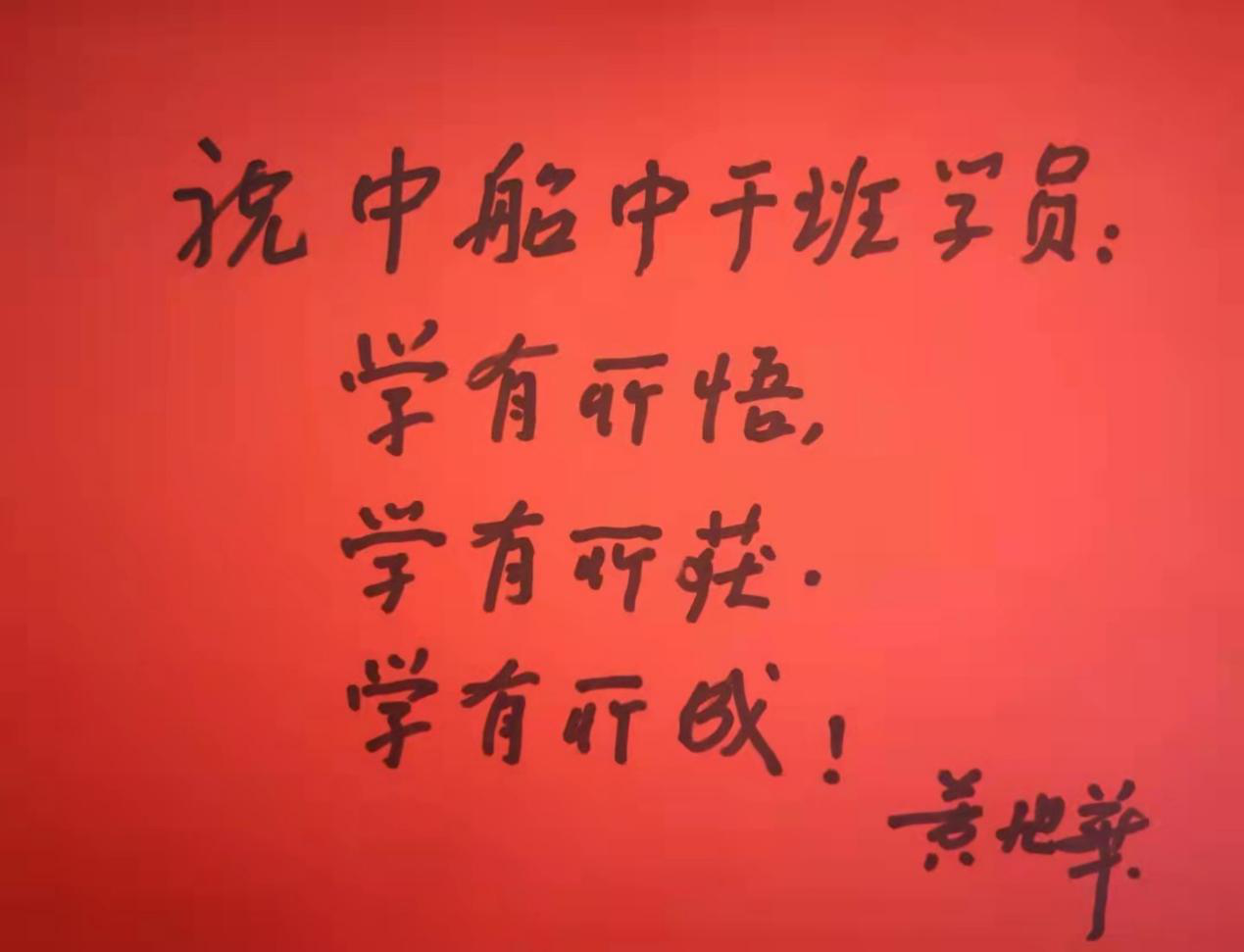 近日,国家最高科学技术奖获得者、中国工程院院士、中国船舶集团有限公司第七一九研究所名誉所长黄旭华给正在我校参加学习的中国船舶集团有限公司第三期中层干部工商管理培训班(以下简称“中干班”)的学员回信并勉励:“学有所悟、学有所获、学有所成”!