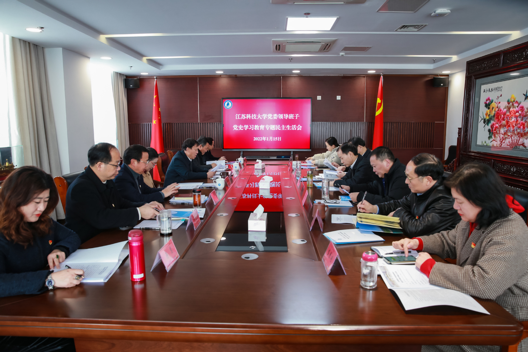会上,葛世伦书记代表学校党委领导班子通报了2020年度民主生活会整改措施落实情况和本次专题民主生活会准备情况。学校党委对开好这次民主生活会高度重视,周密部署,精心安排。一是班子成员采用集中研讨和个人自学相结合的方式,深入学习了习近平总书记在党的十九届六中全会、庆祝中国共产党成立100周年大会、党史学习教育动员大会、全国脱贫攻坚总结表彰大会等系列重要讲话精神,为开好民主生活会打牢思想基础。二是通过召开学生座谈会、教师座谈会、干部座谈会等方式广泛征求全校党员、干部和师生意见建议。三是班子成员之间坦诚交流、充分沟通,重点对照专题民主生活会5个方面进行对照检查,深入进行党性分析,谈对整改落实的具体措施和意见建议。四是认真撰写了个人检视剖析材料,以刀刃向内的勇气,进行自我解剖,明确努力方向和改进措施。