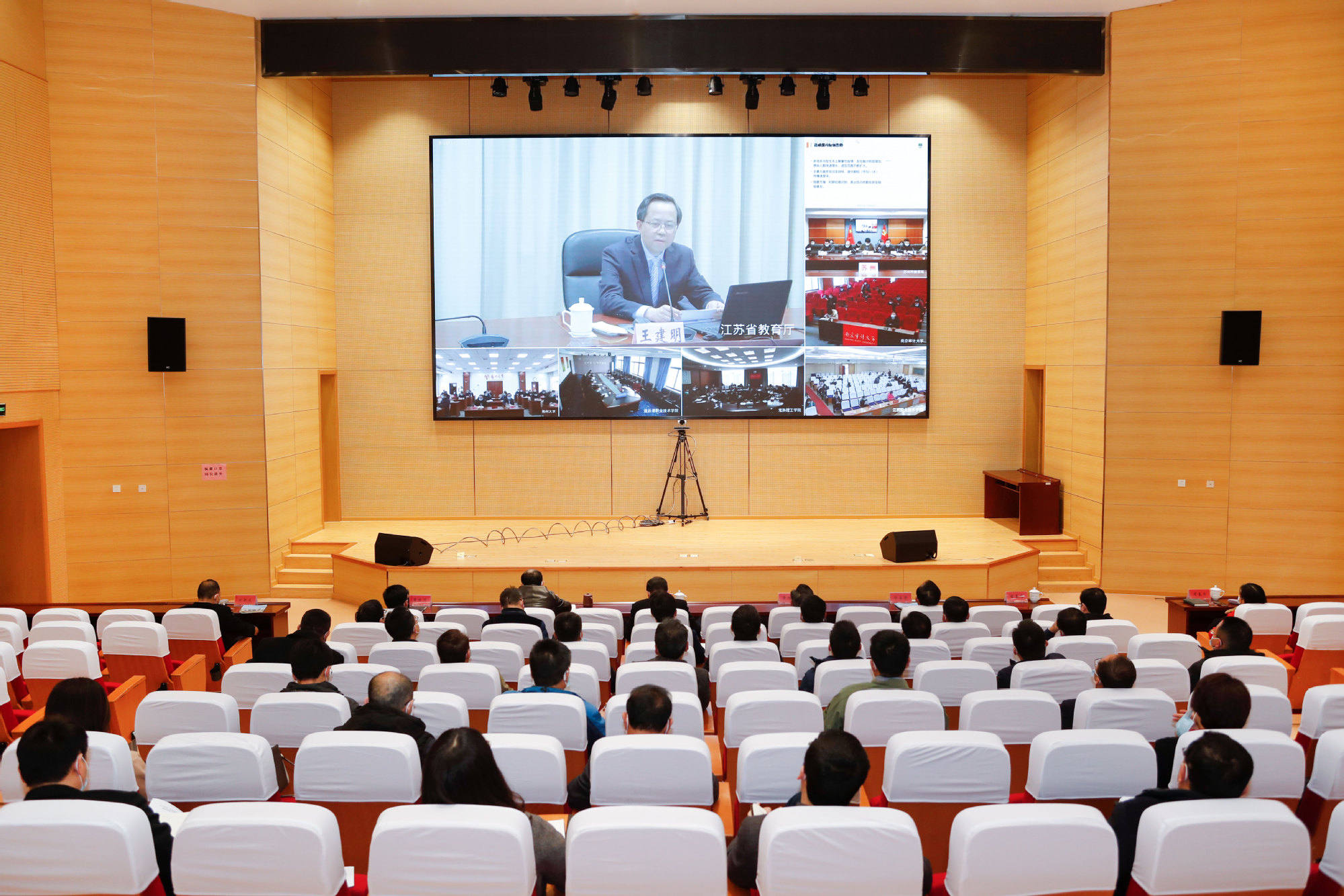 3月22日下午,省教育厅组织召开《江苏省校园突发新冠肺炎疫情应急处置预案》视频培训会。校领导景旭文、许俊华、俞孟蕻、郑培钢,校党委常委李恒川、周春燕、刘新波,学校疫情防控各工作组负责人,各学院党委书记在行政楼100号报告厅参加会议。
