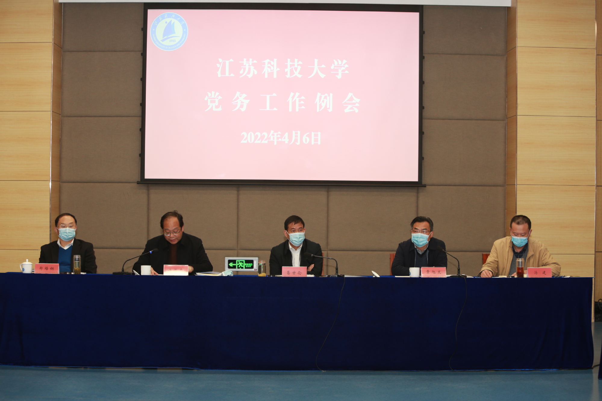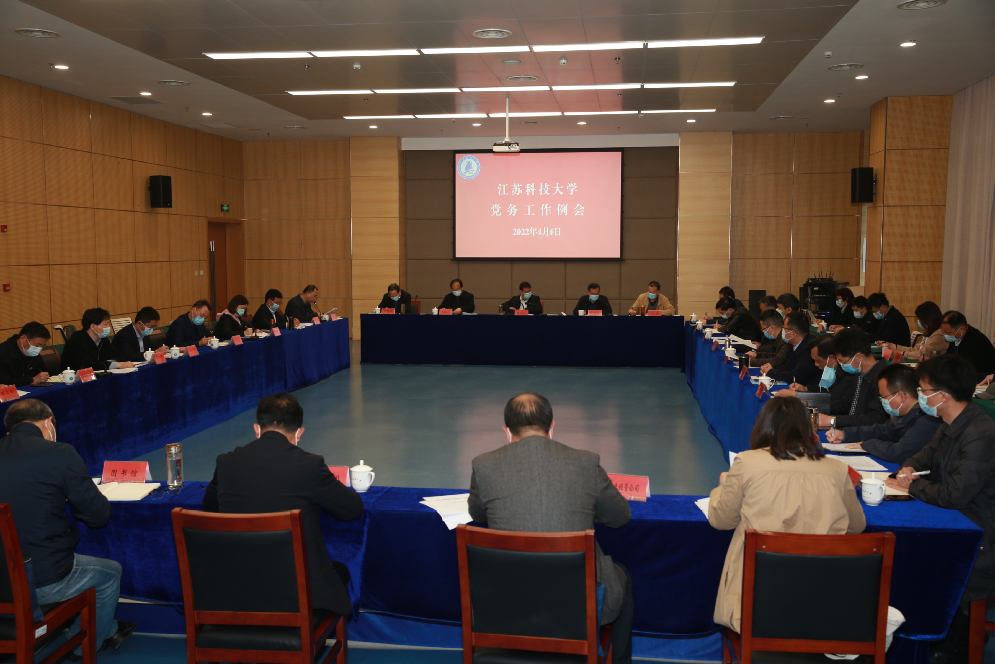 4月6日,学校党委在长山校区图书馆B104报告厅召开4月份党务工作例会,共同谋划部署全年党务工作,就疫情防控工作进行再部署、再动员,确保疫情防控和学校事业发展两手硬、两不误。校党委书记葛世伦,党委副书记、副校长景旭文,党委副书记许俊华,党委常委、副校长汤建,党委常委、纪委书记、监察专员郑培钢出席会议,学校党群部门负责人、各二级党组织书记参加会议。会议由党委副书记、副校长景旭文主持。